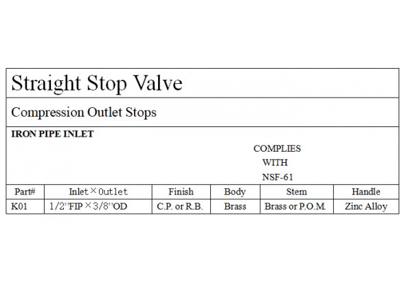 HOME Product Brass Valve &Fittings Brass Supply Stop Valve