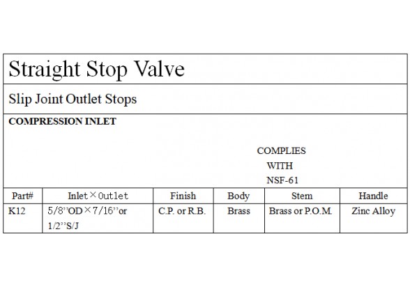 Brass Supply Stop Valve