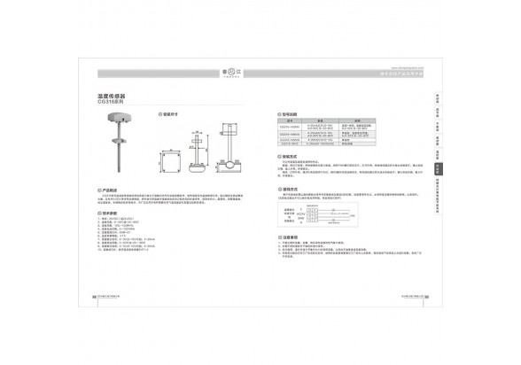 CG316系列温湿度传感器采用优质进口高分子湿敏元件作为湿度测量部件、 铅热电阻作为温度敏感元件,配以精密仪表运算放大器,及专用V/1芯片等信号处理电路,将环境中的温度与湿度转换成与之相对应的标准信号, 具有体积小、 重呈轻、 测呈精度高、 响应速度快、 长期稳定性好等特点 , 可广泛应用于各种需要对空气温湿度进行测量与控制的场合。